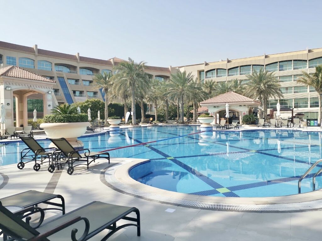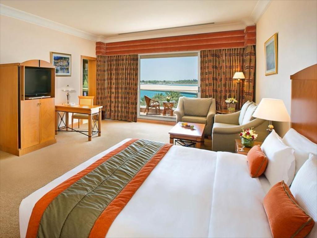 Each room has a large marble bathroom and is luxuriously decorated. All rooms at the Al Raha Beach Hotel have LCD TVs, and some offer Gulf views.