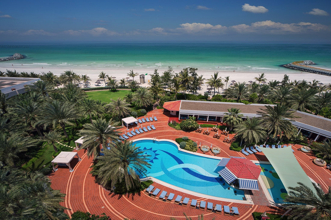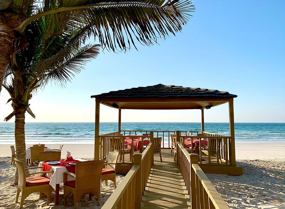 Rooms have bright colour schemes and elegantly-designed wood furniture with a Middle Eastern style. The chic rooms and suites lead onto a private, furnished balcony or terrace. The panoramic view overlooks the Arabian Gulf and the lush, landscaped garden.