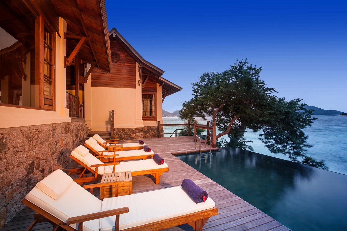 Enchanted Island Resort presents opulent villas set amidst verdant native vegetation on Round Island. The resort boasts a swimming pool, spa, fitness center, and options for water sports, alongside complimentary WiFi in both the villas and common spaces.