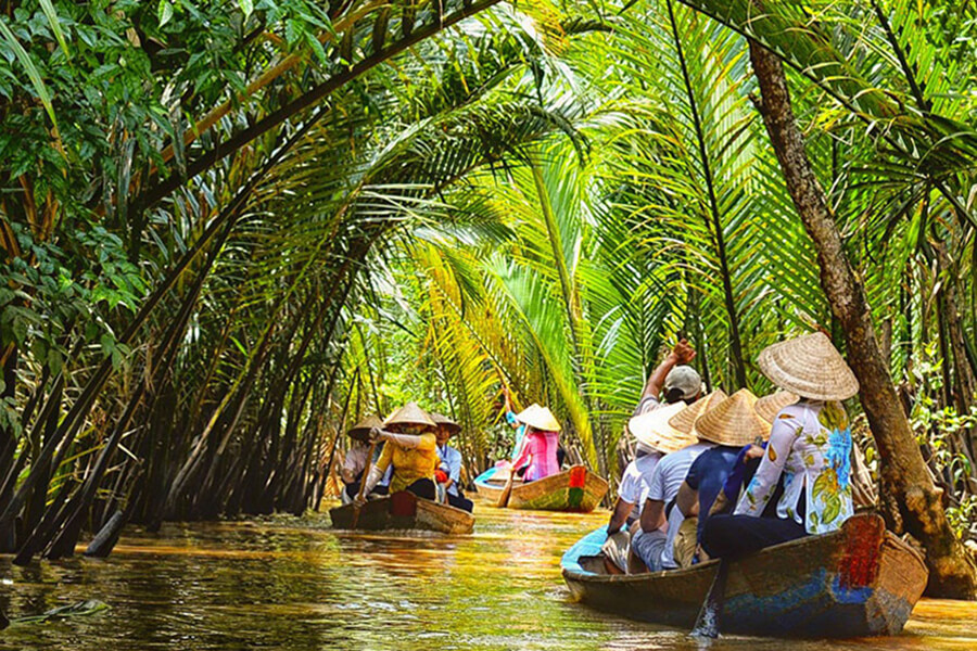 After breakfast at your hotel you will be met and start your day by driving to My Tho the homeland of coconut and family factories with local products like coconut candy, rice paper.