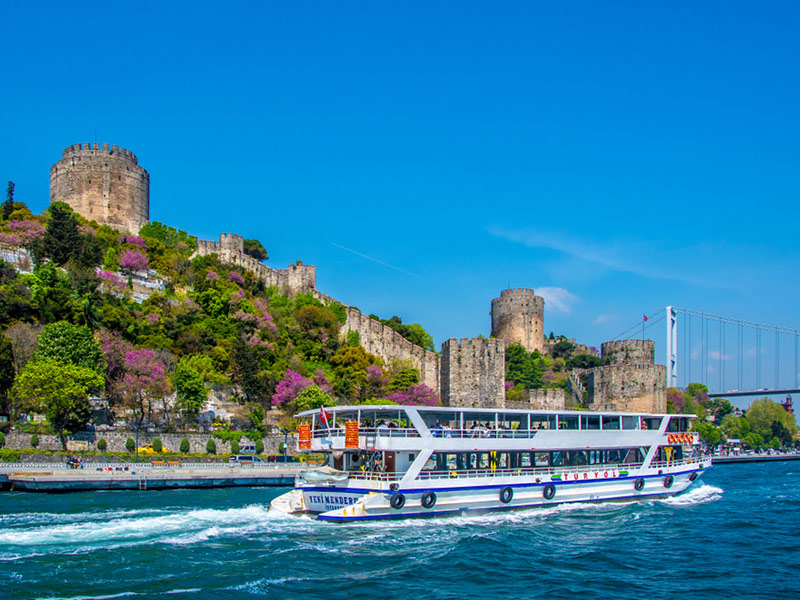 Rumeli Fortress (from the boat – no interior visit), historical armament built by the Conqueror to control and protect the Bosphorus. A unique example of military architecture. (Visit a leather showroom if time permits)